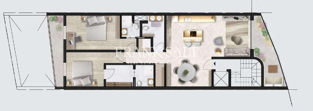 A lovely 2 bedroom apartment located in the village of Kappara. Spanning a total of 108 sqm, with 91 sqm of indoor living space and 17 sqm of outdoor area, this apartment is ideal for those who value comfort and style. The layout includes a spacious open-plan kitchen, living, and dining area that leads to a wide front terrace, perfect for entertaining.
