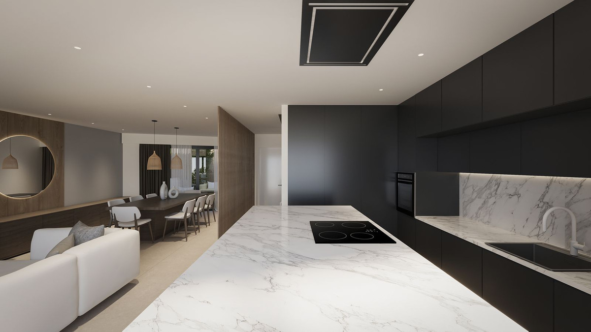 Beautiful apartment in Can Barbara Palma with views, large living room with open-plan kitchen of 60 m2, has 3 bedrooms, two with views and three bathrooms, one en suite, the kitchen is equipped with Siamens appliances and has invisible induction cooking surface, water softener and reverse osmosis system, the floors are large format 100x 100 porcelain, white lacquered interior carpentry with doors